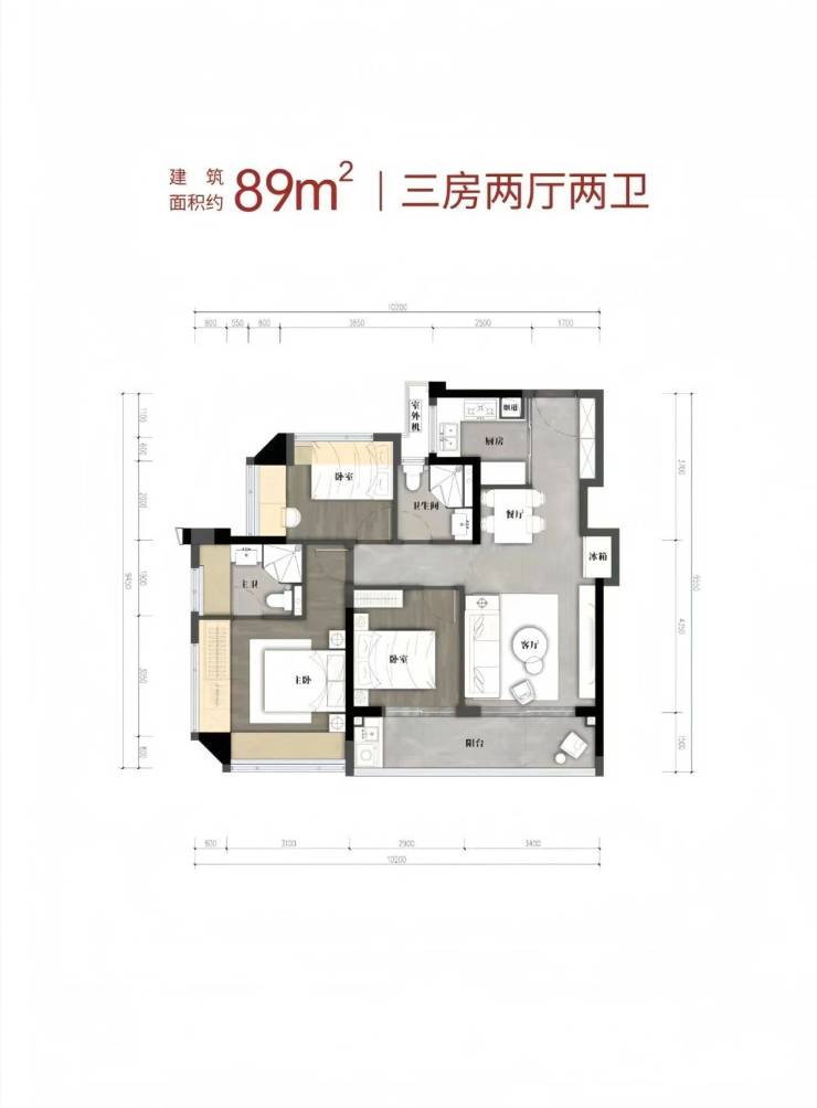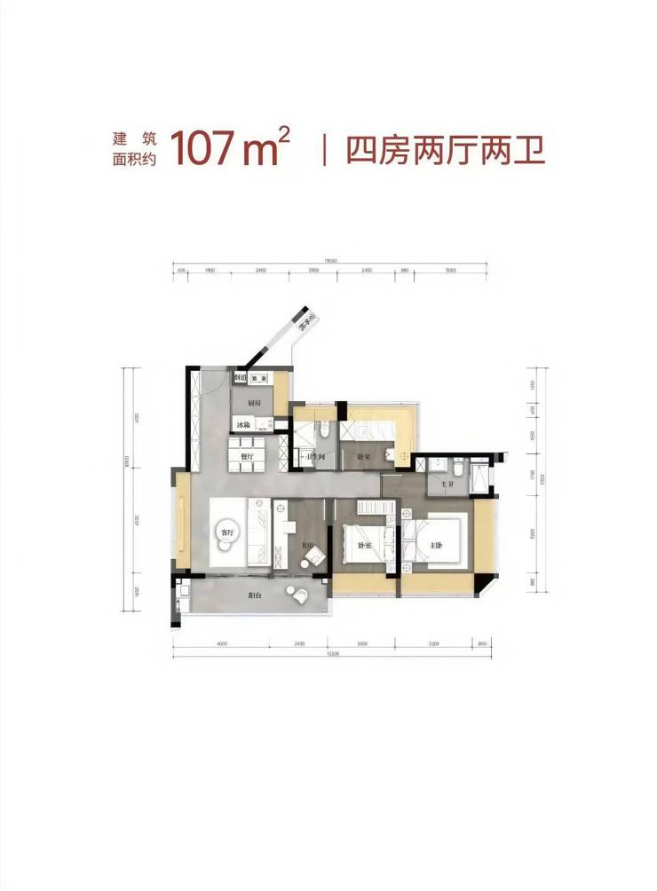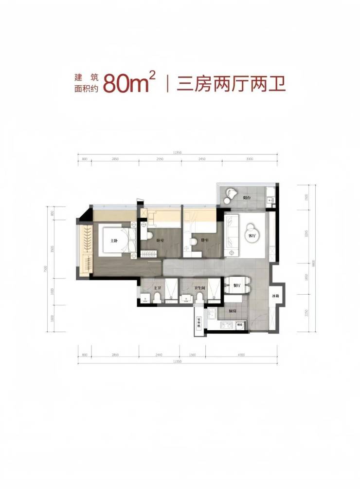 户型:建面约80-110㎡三到四房两卫