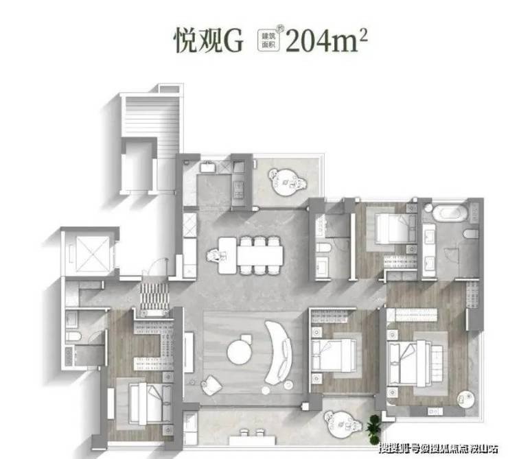 206㎡悦观 G 户型:独立电梯厅,9.3米南向阳台,双主套设计,高端改善人群的首选。