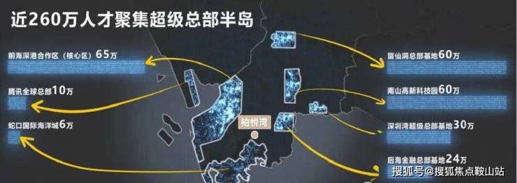 七大全球总部基地,激荡全球资本的湾区超核,由总部经济带串联,吸引大批诸如腾讯、大疆、阿里巴巴等行业龙头企业,以及大批总部企业入驻,未来将吸引260万人才聚集。