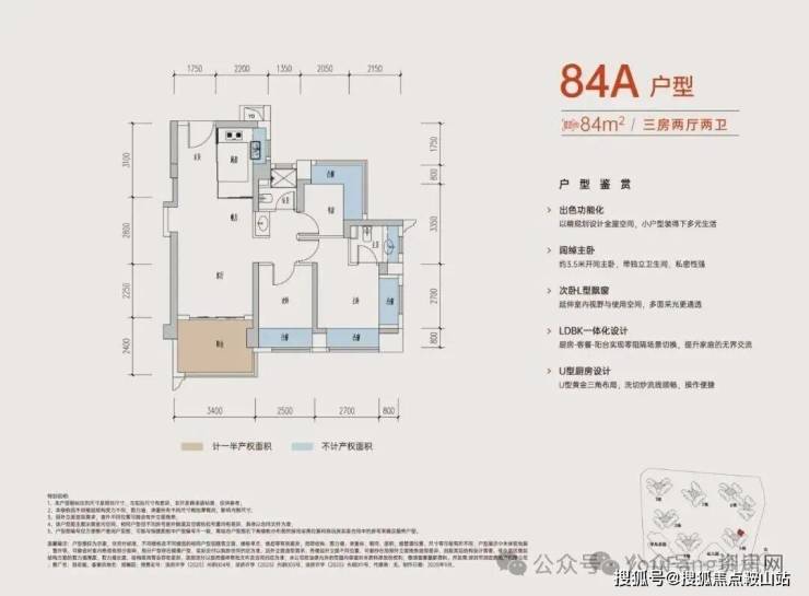 84A户型 3房2卫户型