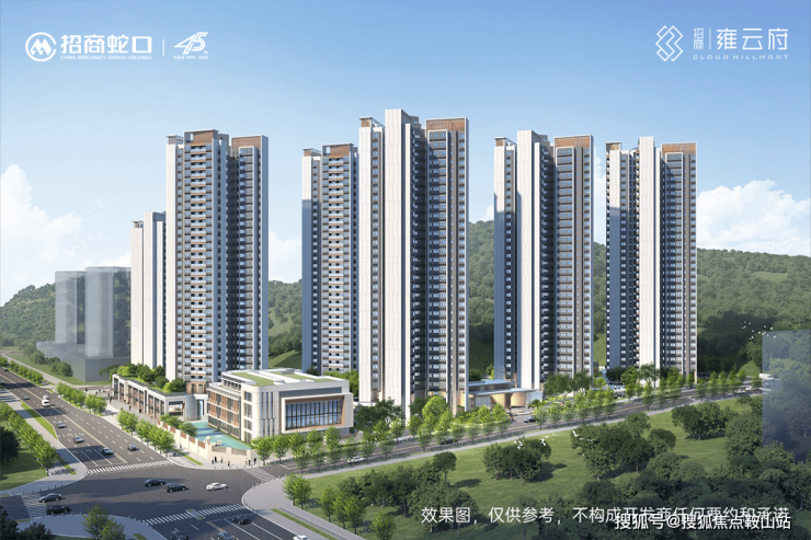 招商雍云府,占地面积约2.7万㎡,总建筑面积约13.36万㎡,计容建筑面积9.76万㎡,容积率3.5,共由6栋22-31F住宅组成,其中1栋商品房31F,2/3/5栋商品房30F,6栋1单元商品房29F,6栋2单元公共租赁住房22F,4栋是1所9班制幼儿园。