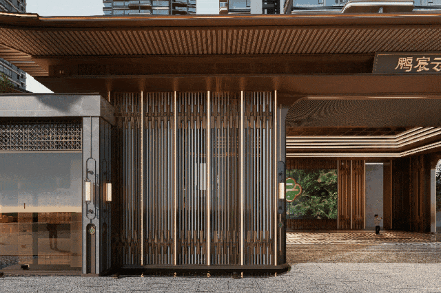 项目采用岭南建筑风格,古朴的金属搭配通透的现代材料,建筑体型轻盈,华丽精美。