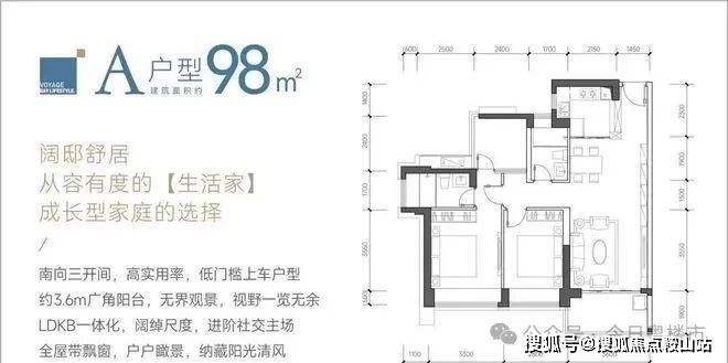 98㎡的3房2厅2卫,设计的是经典竖厅格局,LDKB一体化设计,客厅3.6米开间,三开间朝南,动静分区,3个卧室分别做到了主卧13.69㎡/次卧11.62㎡/次卧5.76㎡(包含墙体飘窗),都不用搭配飘窗做床,L型厨房,卫生间干湿分离,得房率约:89%(包含赠送),西南、东南或正南朝向
