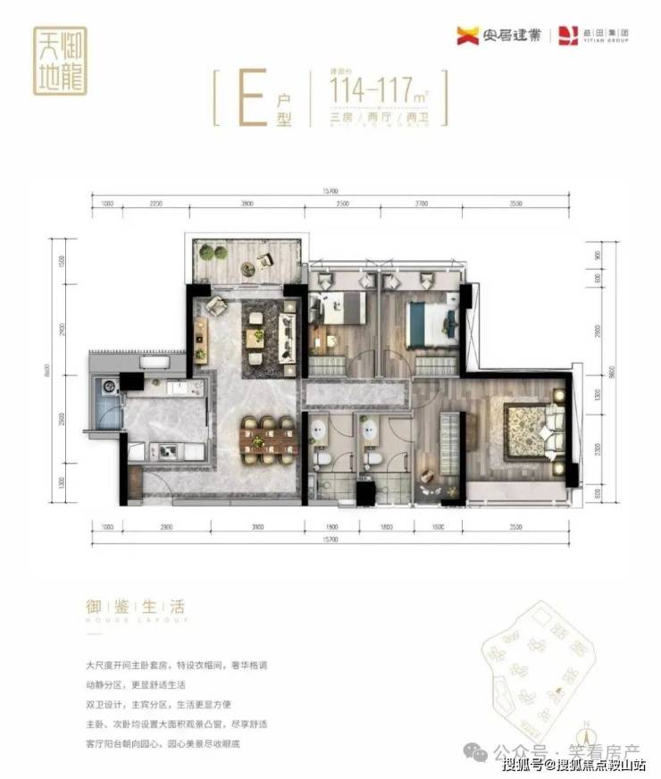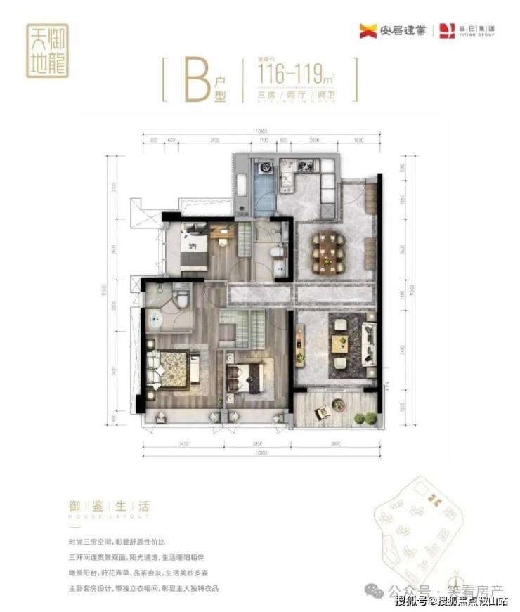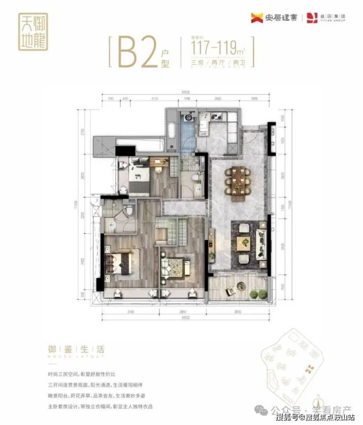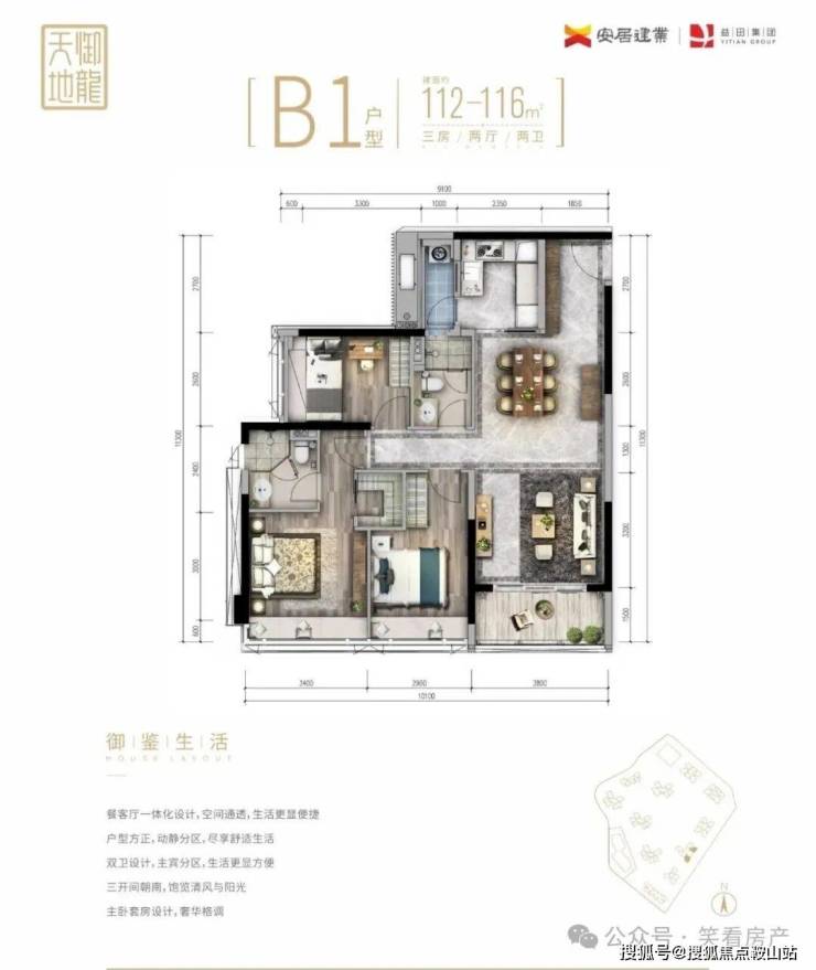 2️⃣B栋,D栋,E栋的双边户112平-119平共有十个户型共同的特征都是横厅和内阳台