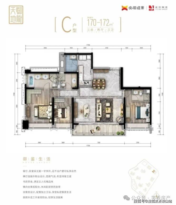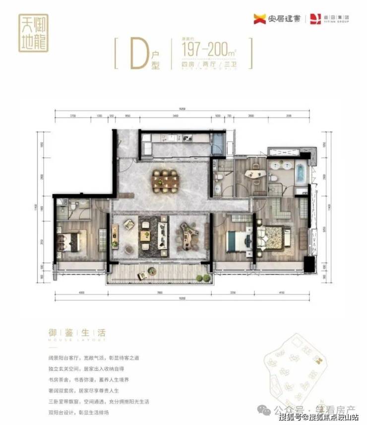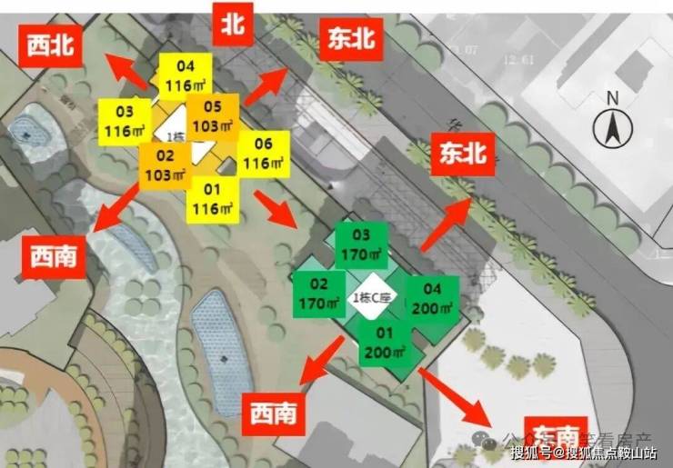 3️⃣C栋才有的四房,竖厅和外阳台,0304户型东北出阳台,0102户型西南出阳台,0203户是170平,0104户是200平