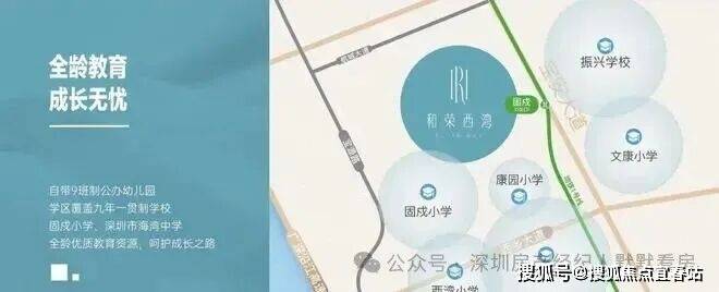 项目自带9班制公办幼儿园,学区覆盖九年一贯制固戍小学、深圳市海湾中学,启航精英人生路。