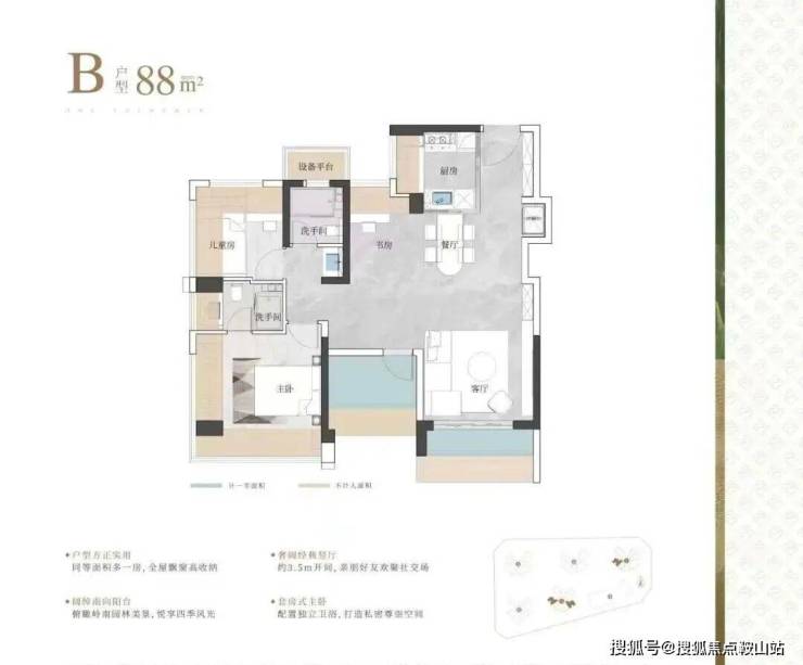 开样板房已开放,首推368套,在售建面约88-142㎡3-4房。项目共2000多户,得房率超过100%,纯粹住宅大盘。