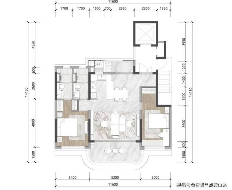 即使是最小的105㎡户型,也充分体现了设计师对度假豪宅家庭关系场的把握。搜建筑