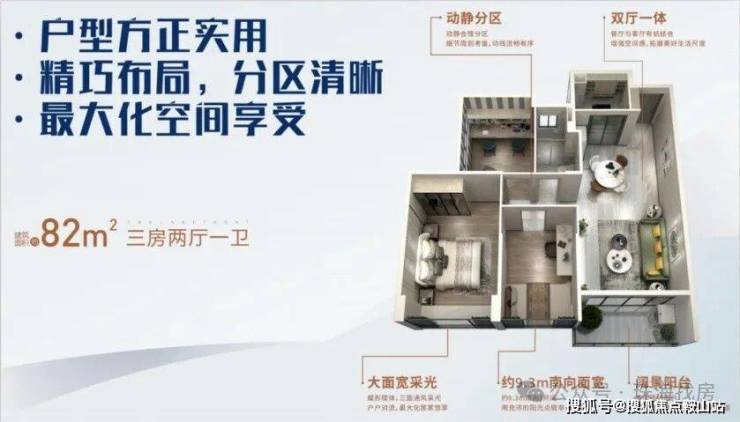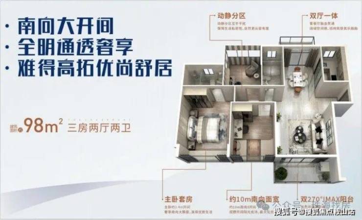 蝶形楼体,270°三面采光通风;全明通透户型,功能分区合理,品质生活从容有度。