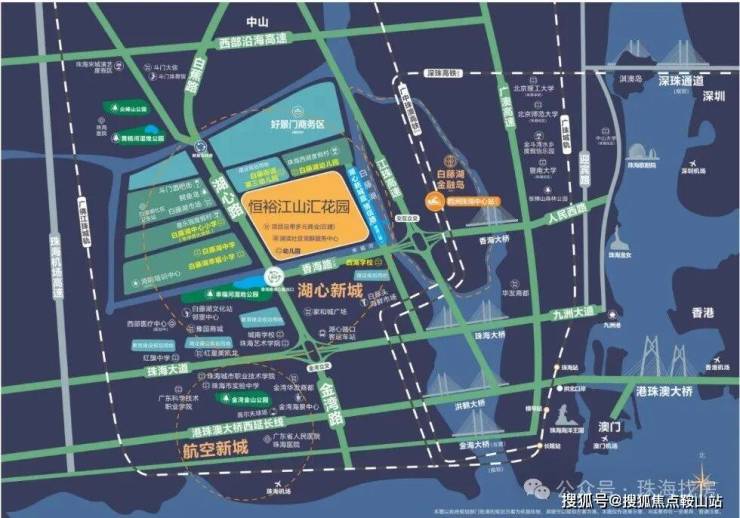 珠海西拓首站、湖心新城要塞枢纽,紧邻香海桥湖心路出口,目前已全线通车,从项目出发,20分钟通达主城区,毗邻鹤州珠海中心站CBD,距离项目约5公里珠海中心站(鹤洲)。
