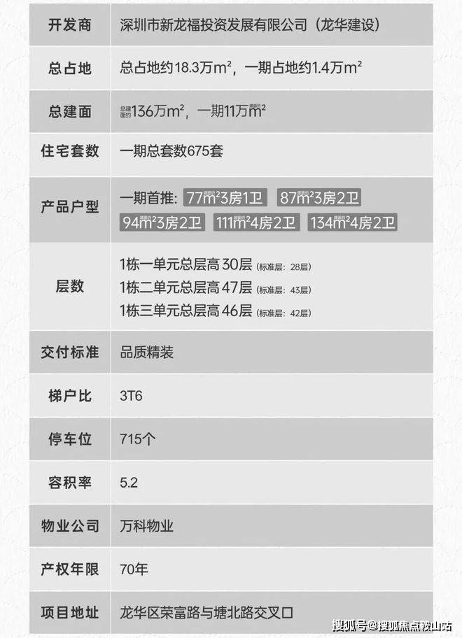 总规划675户,其中可售商品房167套,回迁房507套,1套物业用房,地下2层半,规划停车位715个,车位占比约1:1.06。
