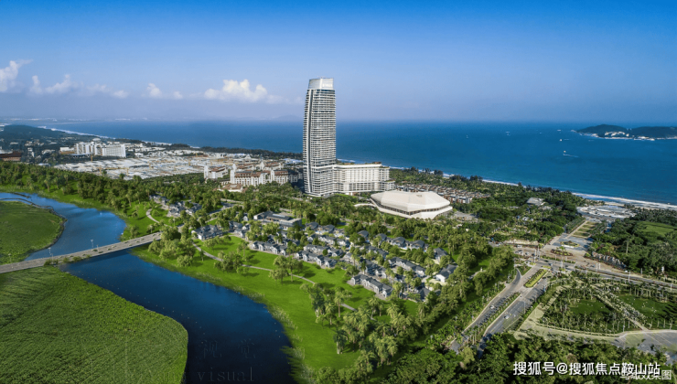 从航拍来看保利棠隐的位置,相当不错,属于海棠湾二线的稀缺别墅产品,