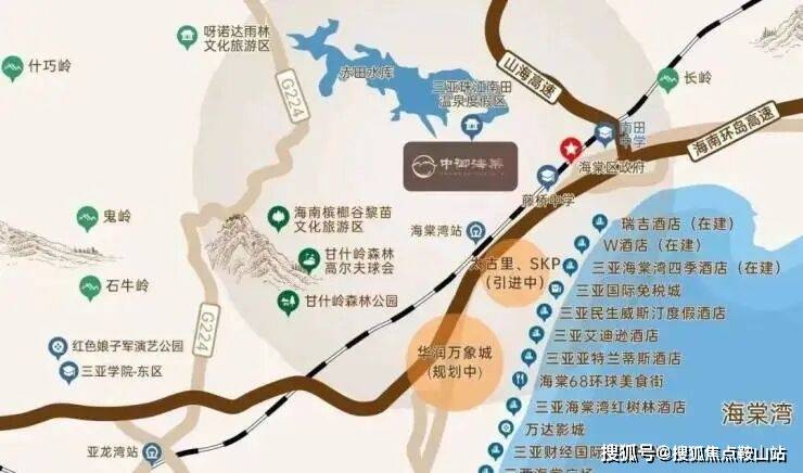 海棠湾是海南唯一一个由国家规划打造的度假湾区,定位为国家海岸,22公里海岸线汇聚千亿配套,32家超五星级酒店、4大主题乐园、5大高尔夫球场、310解放军医院海南分院、亚洲最大单体免税店、华润超级万象城、北京华联SKP等资源环伺。中御海棠项目位于海棠湾南田片区,坐享东线高速、山海高速、机场、高铁、城际公交等三维立体交通网,度假生活出行四通八达。