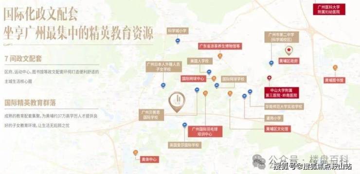 教育——项目3公里范围内集聚市二中、爱莎国际学校、贝赛思国际学校、华南师范大学附属黄埔实验学校(南校区)、美国人学校等多所国际院校,营造双语教学环境,培育与国际接轨的菁英人才;
