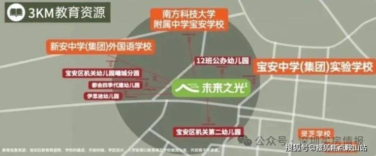 项目内自建幼儿园,3km内南方科技大学附属中学宝安学校(在建中)、宝安中学(集团)实验学校、新安中学(集团)外国语学校、曦城协同学校等学府汇聚