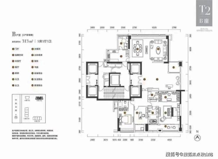 T3栋为266平和270平3房3厅3卫户型