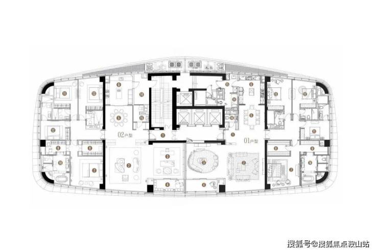 5梯2户多梯入户。“狠”尊享。从北京霄云路8号到上海汤臣一品再到深圳湾TOP顶豪,专梯入户是标配。而在One Palace 天元,这已成过往。▽