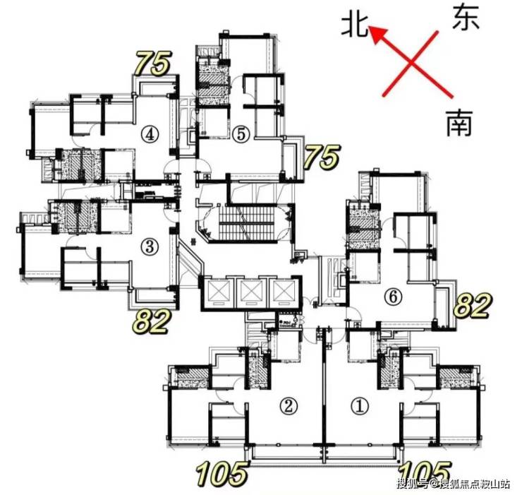 75方有东北东南向,82方是西南东南向,105方是西南向