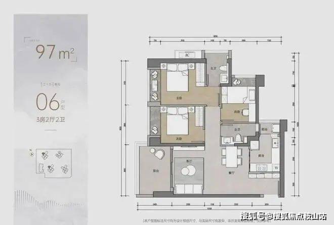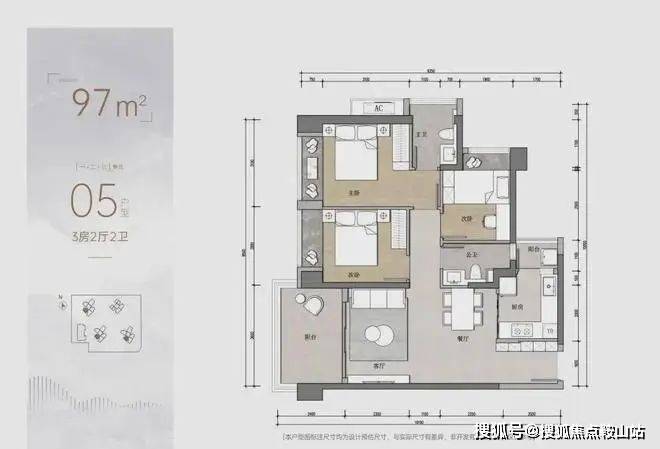 建面约97㎡的户型,产品不论是在功能设计上还是空间利用率上都是极其考究的。三开间朝南;双阳台的设计把每一片空间都高效利用,约3.6米开间,约2.4米进深奢阔景观阳台,让生活每天充满阳光与健康;厨房L型布局,一个转身即可完成洗、切、炒、取;黄金动线、操作流畅;厨房与生活阳台相连,明亮的采光会提升烹饪时的愉悦感。