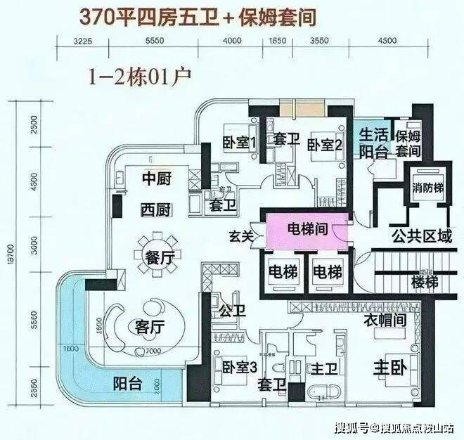 分布在C栋,4梯3户,层高3.3米,专梯入户。作为起步户型,设计为三房而非四房,保证圈层纯粹。总价预计3500万+,但需注意部分户型有遮挡。