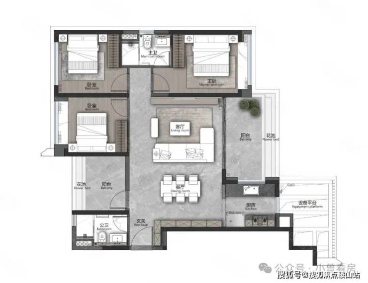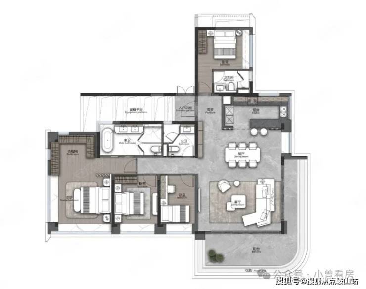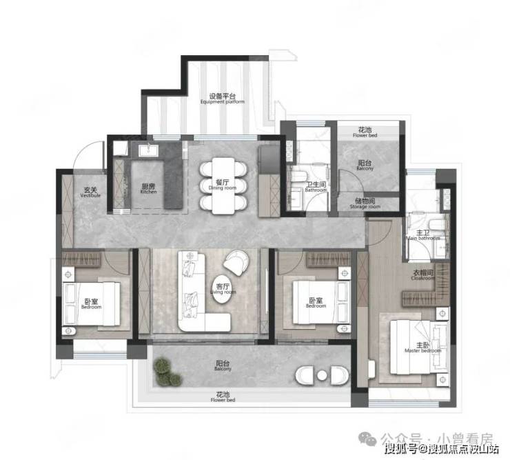 目前在售的户型覆盖刚需到改善需求,得房率超过 100%,每户还配备 5-8㎡的设备平台,相当于额外多出一间房。