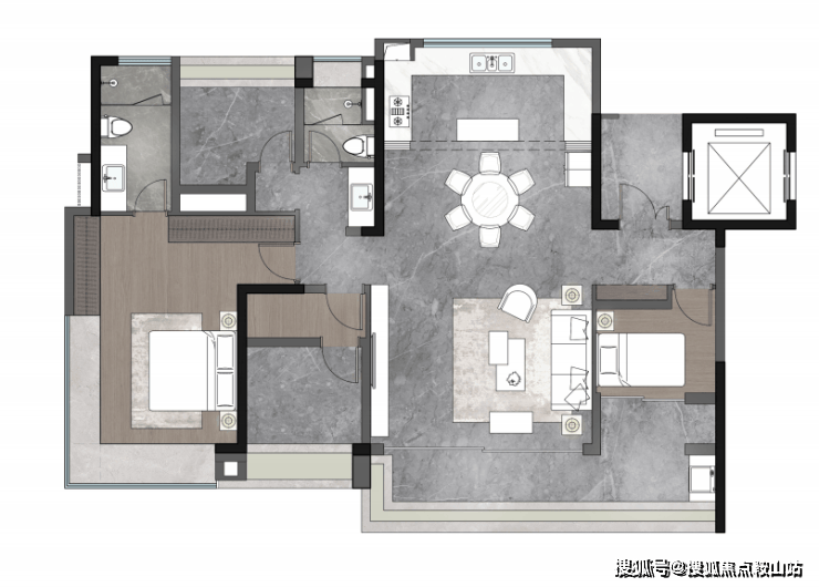 建面约170㎡航母大平层,LDKG世界会客厅,南北通透,层大人物的生活主场,豪华双套卧,主卧270度飘窗配尊崇衣帽间及酒店式双台盆;