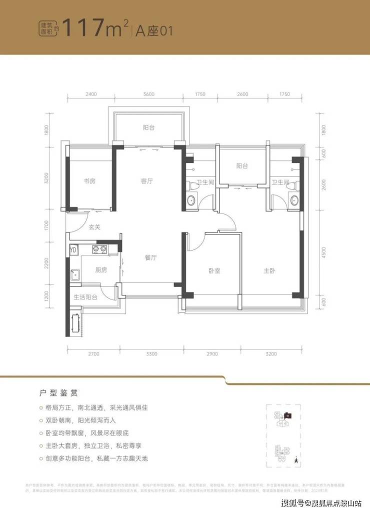 建面约117㎡南北通透4功能空间