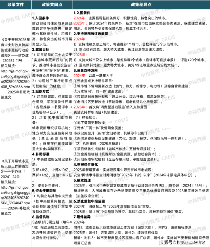 2024年,财政部、住建部联合印发《关于开展城市更新示范工作的通知》(财办建〔2024〕24号),首次启动城市更新示范工作,并在随后的评审结果中确定石家庄、太原、沈阳、上海、南京、杭州、合肥、福州、南昌、青岛、武汉、东莞、重庆、成都、西安等15个城市作为首批补助对象。在获得显著成效后,2025年4月,财政部、住建部再次联合印发《关于开展2025年度中央财政支持实施城市更新行动的通知》(财办建〔2025〕11号),并在5月份公布了第二批城市更新行动评审结果。北京、天津、唐山、包头、大连、哈尔滨、苏州、温州、芜湖、厦门、济南、郑州、宜昌、长沙、广州、海口、宜宾、兰州、西宁、乌鲁木齐等20个城市成功入选新一批名单,补助总额超过200亿元。本文从政策的比较,补助的作用机制,对城市的作用进行分析,为城市更新行动参与者提供参考。