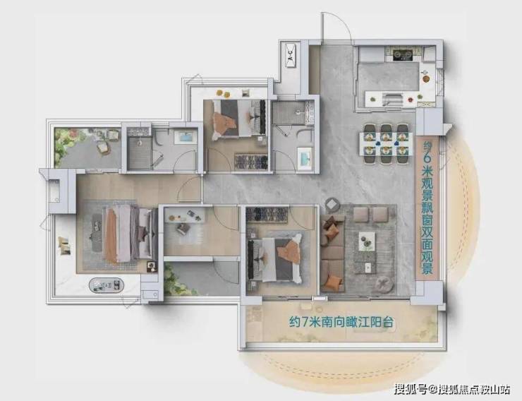 (4)主卧创意空间可安排子母房,更匹配二胎家庭使用场景