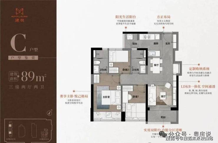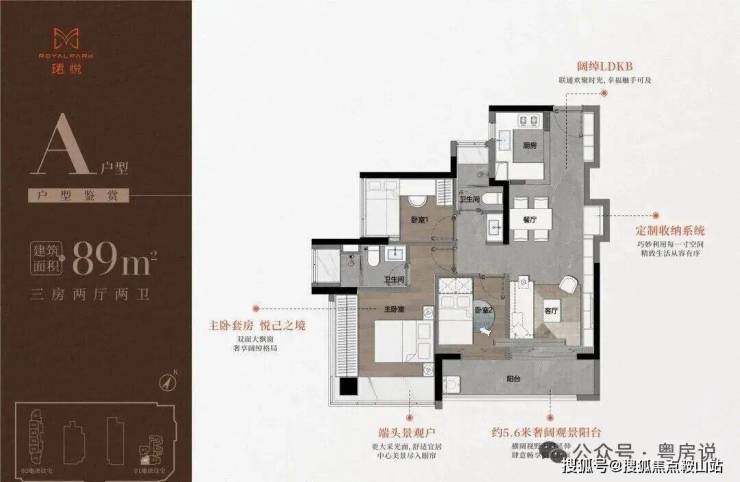 A户型:大阳台,主卧通过凸窗赠送衣柜,但次卧尺度都偏小,越过家居建材市场看向中粮大悦城写字楼,视野开阔
