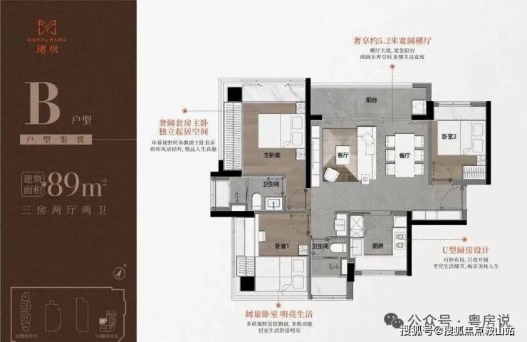 B户型:1栋1单07户型(西北向),双龙宝珠户型,起居室互不打扰,适合生活作息有差异的家人,看向宝安中医院和后面的老旧小区