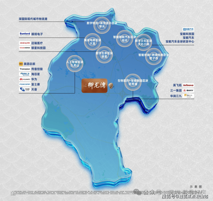💎九龙山数字城:全市22个市级重点开发建设区域之一,目前进驻企业约300家,聚集了华为、迈瑞医疗、美团、富泰华、泰衡诺、富士康、海目星、天音等龙头企业已进驻;