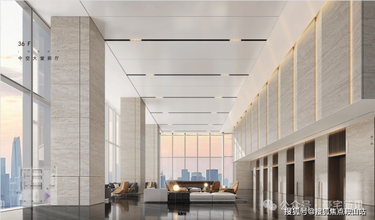 大堂层高:首层净高18m,空中大堂层高9m