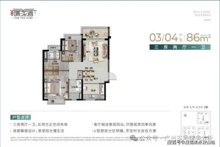 建面约86-135㎡臻品三至四房,两梯三/四户。