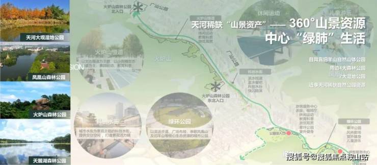 火炉山森林公园、凤凰山森林公园、天麓湖森林公园,引山入园,山园相容,打造广府自然家。
