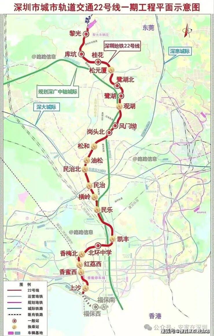 22号线鹭湖站在建,始于龙华黎光站,途经龙岗区,终于福田上沙站,开通后到福田仅需45分钟。
