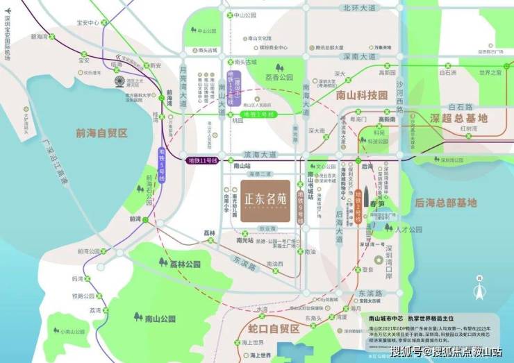 南山区作为深圳科创中心及大湾区发展核心引擎,2021年全区GDP稳居全市榜首,唯一聚集前海、深圳湾、科技园以及蛇口四大核心经济发展极核中心,坐享城市高度发展红利。