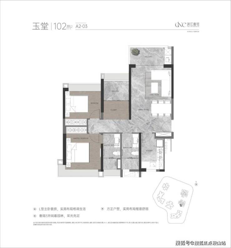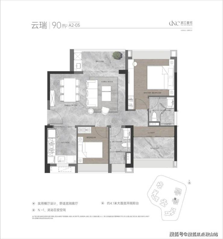 以近期最受欢迎的A2栋为例,05户型建面约90平三房,对流横厅设计,总价七字头起!