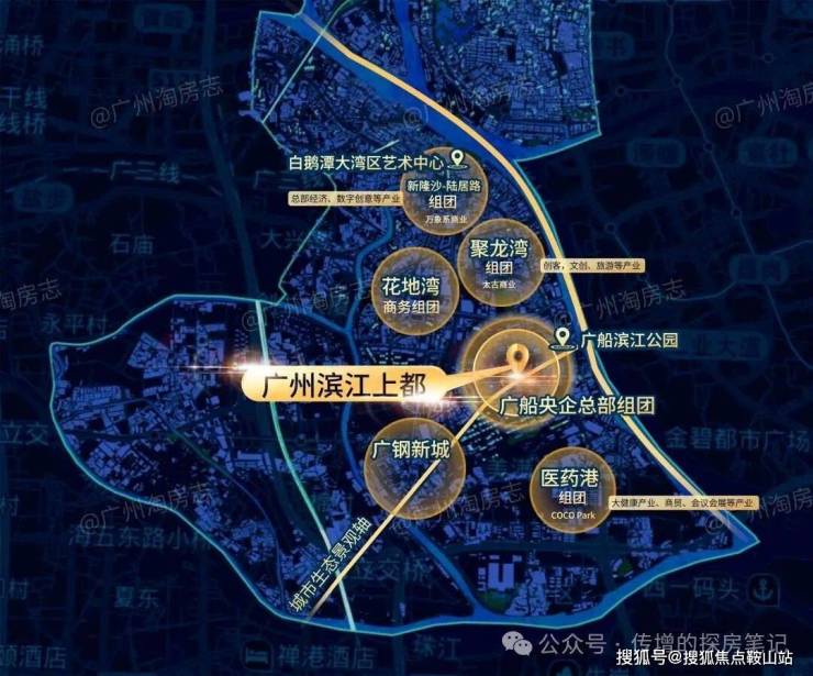 作为广州城市文化中轴与城市景观轴的交汇点,以白鹅潭CBD、一江两岸四城和新TOD枢纽规划为起点,打造立足广州、辐射粤港澳大湾区、面向世界的国际化滨江活力区,集商务、商业、生活、休闲、文化体验为一体的多元化城市综合体。