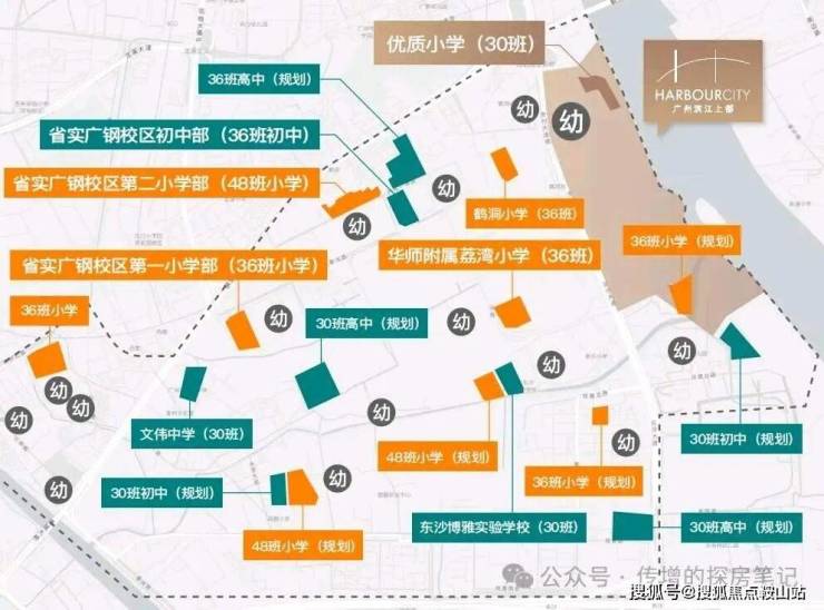 首期将配建一所12个班幼儿园和30班优质小学广东外语外贸大学附属小学(已建成,24年9月已开学)。