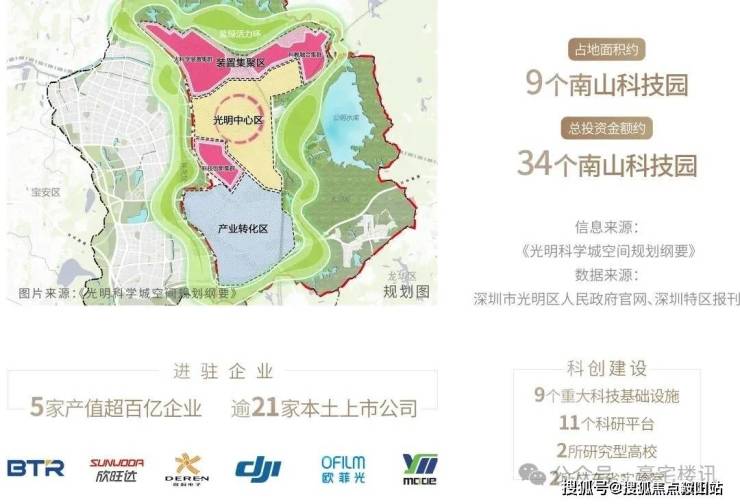 深圳光明区,规划为世界一流科学城和深圳北部中心,光明科学城为广深港科创走廊重要节点,以“一心两区”为蓝图,定位打造“中国新硅谷”,战略地位堪比硅谷之于美国旧金山、张江之于上海浦东,聚集24个创新载体建设,强势驱动科技国际化进程。