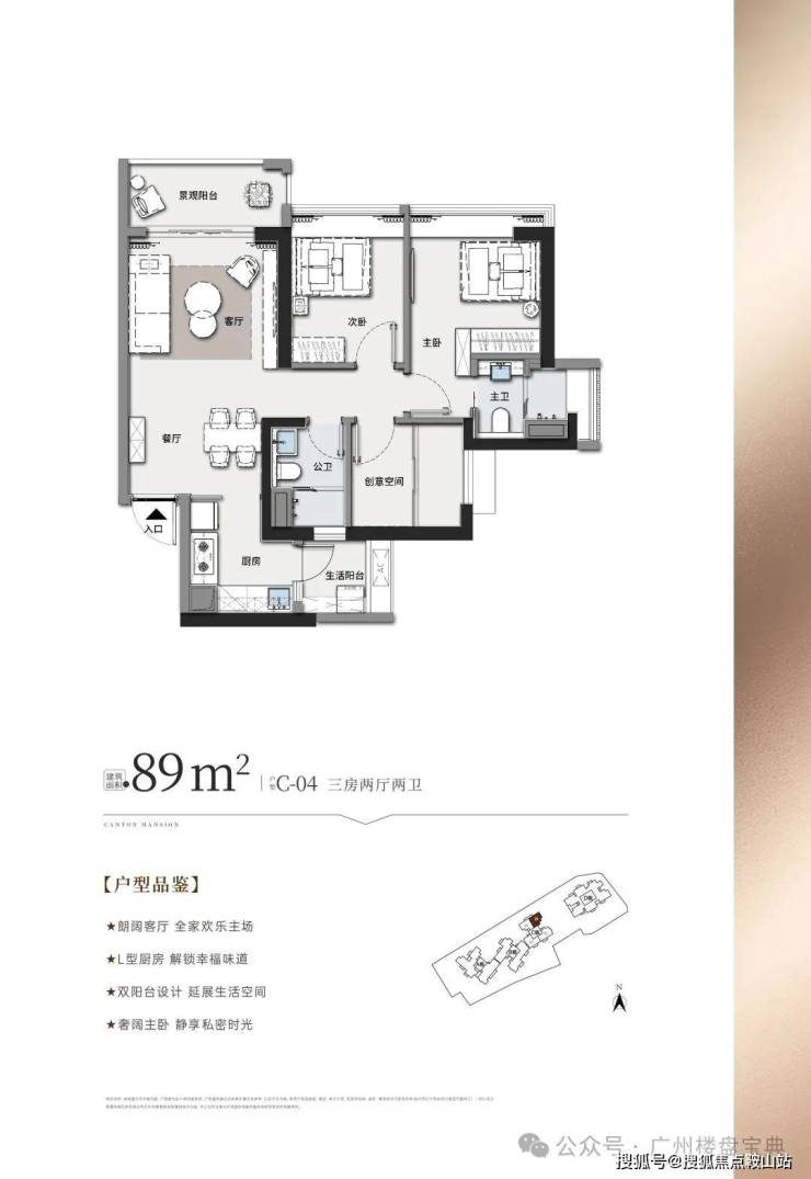 建面89平三房,方正实用,动静分区,双阳台设计,L形厨房布局,兼具实用与舒适,约3.6米阔景阳台,视野开阔,揽江城美景。