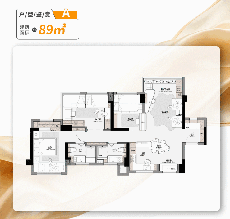 建面约89㎡A户型,南北对流,堪称光明区极具性价比的横厅户型。