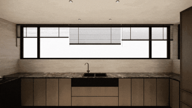 二期最大的户型,也做足了尺寸感。尤其是连着飘窗做厨房,把整个餐客厅的公区尺寸感拉满了,近60平,开间约5.8米。