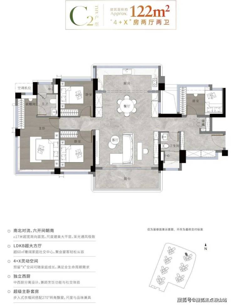 而无论是超60平LDKB,还是约5.5米超级厨房,正常来说,都不会出现在160平以下户型,更遑论一个区区122平的户型!