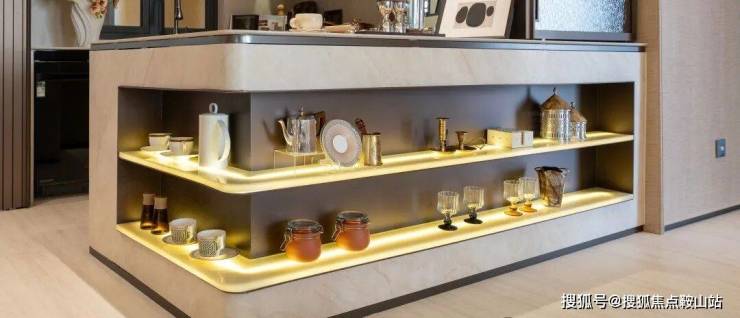 有了这个转折,操作台能兼任餐边柜功能,随手取物更加方便。