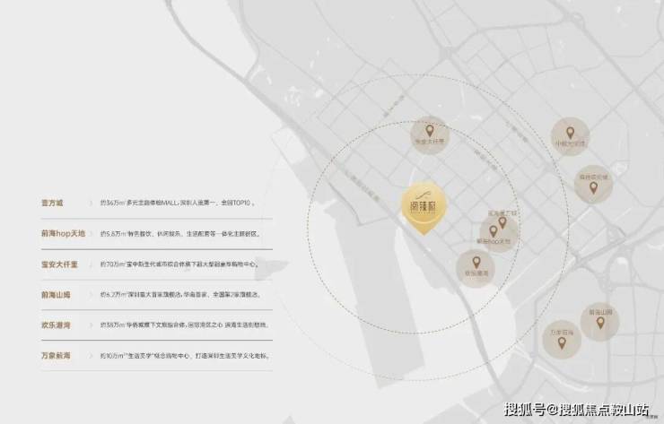 壹方城、欢乐港湾、前海HOP、大仟里、大悦城、万象前海、前海山姆、海雅缤纷城等十大标杆商业环绕,总计超160万㎡世界级地标商圈。