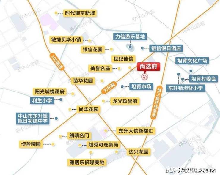 从项目出发,对面就是世纪佳信美食街,200米旁是坦背市场,瞬息即达壹加壹商圈、东升医院、社区卫生服务站、东升公园、旭日广场等生活休闲娱乐配套,舒适生活步行即达。紧邻中山西区,城区配套触手可及,中山市中医院、彩虹绿洲湿地公园、五月花影城等生活配套约5公里即可到达,生活更加从容舒适。