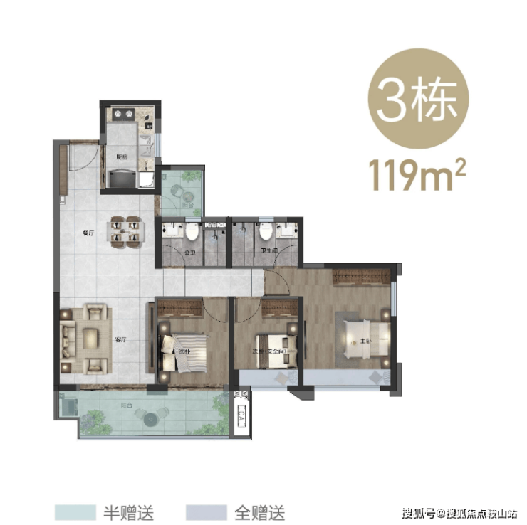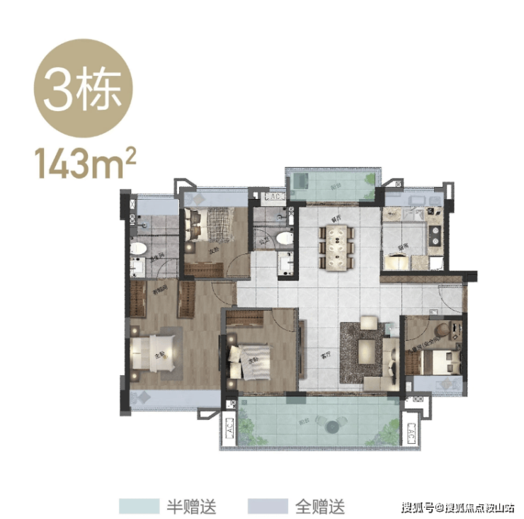 【产品面积】: 约102-119㎡三房、约130-143㎡四房