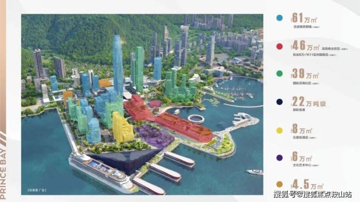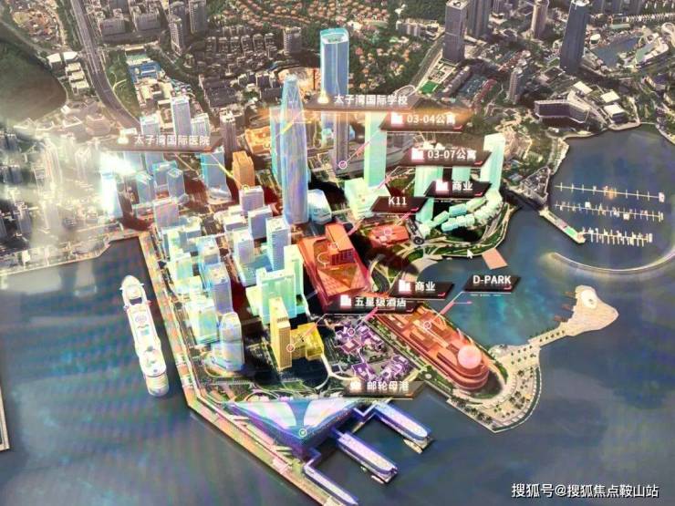 鼎级配套:约170万m²未来之城(约61万m²商务集群,含约380m超高塔尖商务总部+约46万m²滨海商业,含K11亚洲旗舰商业体、D-park等+约39万m²国际滨海社区+6万m²文化艺术中心+约8万m²五星级酒店+约4.5万m²太子湾国际学校、国际医院),一湾三坊城中城,滨海生活时代领地。